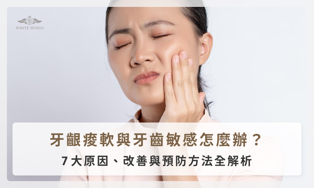 牙齦痠軟的原因有哪些?牙齦痠軟很有可能與牙本質敏感有關,當牙齒的保護層受損就會引起疼痛等敏感症狀。本文將說明牙本質敏感的原因與症狀、牙齒酸軟7大原因、並提供日常護理、專業治療及提前預防的全面指南。 一、牙本質敏感是什麼? 牙齒結構由外而內是由琺瑯質、牙本質和牙髓腔所組成。牙本質位於琺瑯質下方,內部有數百萬條微小的通道,稱為「牙本質小管」,當牙齒表面的琺瑯質或牙齦覆蓋的牙骨質因磨損、侵蝕或牙周病等原因受損,牙本質便暴露於口腔環境中。此時一旦接觸到冷、熱、甜、酸等外部刺激,會導致牙本質小管內的液體發生快速流動,進而刺激牙髓腔內的神經末梢,導致牙齒出現酸軟、刺痛或短暫疼痛的敏感症狀,這就是所謂的「牙本質敏感」。 二、牙齒酸軟的 7 大常見原因 1.牙齦退縮 當牙齦邊緣向牙根方向退縮時,原本受到牙齦與琺瑯質保護的牙根會暴露出來。由於牙根表面沒有琺瑯質保護,遇到冷、熱、酸、甜等刺激時,容易出現牙齒酸軟不適。 2.牙周狀況不佳 牙齦痠軟常見於牙齦發炎初期,如牙周病、牙結石堆積或口腔清潔不足,導致牙齦邊緣向牙根方向退縮,使原本被牙齦和牙骨質保護的牙根部位暴露出來。發炎反應會導致牙齦敏感。 3.蛀牙 初期蛀牙在尚未明顯疼痛前,可能僅表現為短暫的牙齒敏感;若齲蝕進一步深入牙本質甚至影響牙髓層,牙齒酸軟或疼痛感會更加明顯且持續。 4.錯誤刷牙方式 長期橫向或用力刷牙會導致琺瑯質變薄,使牙本質更易受到刺激,當牙齒表面保護層下降,導致牙齒酸軟。 5.夜間磨牙 夜間磨牙會加速牙齒咬合面的磨損,可能會產生微小的裂紋,這些裂紋通向牙本質,導致牙齒酸軟。 6.飲食習慣偏酸 經常飲用高酸性食物和飲料會溶解琺瑯質的礦物質;胃食道逆流或嘔吐也會使胃酸反覆接觸牙齒,造成嚴重的酸蝕。 7.牙科治療後的暫時反應 進行部分牙科治療,例如洗牙、牙根整平術、補牙或美白療程等,結束後牙齒可能會出現暫時性的敏感症狀,不過通常會隨著時間慢慢消退。 三、牙齒酸軟預防與改善方法 (一)牙齒日常護理 保持規律清潔:每天至少刷牙兩次,並搭配使用牙線或牙間刷,徹底清除牙縫與牙齦邊緣的牙菌斑,減少牙菌斑堆積,預防牙周組織發炎、牙齦萎縮與牙根敏感。使用抗敏感牙膏:含有特殊活性成分(如硝酸鉀、氟化亞錫或氯化鍶)的牙膏,這些成分可以鈍化神經反應或封閉牙本質小管的開口。改變刷牙習慣:避免使用硬毛牙刷,並採用貝氏刷牙法,以輕柔的畫圈方式清潔,避免橫向大力刷牙。使用含氟漱口水: 氟化物有助於牙齒再礦化,強化琺瑯質。 (二)專業牙科治療 局部塗氟或脫敏劑:牙醫可以在敏感的牙根表面塗抹高濃度的氟化物凝膠、專門的脫敏劑或牙本質黏著劑,來封閉牙本質小管。補牙或修復:因為缺損、磨損或牙根齲齒導致的敏感狀況,可透過樹脂補綴或玻璃離子體修復來覆蓋暴露區域。牙冠或牙齦移植:因為嚴重磨損或牙齦萎縮導致的敏感狀況,需要製作牙冠保護牙齒,或進行牙齦移植手術來覆蓋暴露的牙根。根管治療:當敏感症狀極為嚴重且上述方法無效時,牙醫可能會建議進行根管治療,移除牙髓內的神經組織。定期口腔檢查:至少每 6 個月進行一次專業洗牙和口腔檢查,才能即時發現並處理牙齦萎縮或輕微磨損等症狀。 (三)飲食習慣調整 減少攝取酸性食物與飲品:減少過度攝取酸性食物和飲料,飲用酸性飲料時,可使用吸管減少飲料與牙齒的接觸;食用酸性食物後,先用清水漱口,等待約 30 分鐘後,口腔酸鹼度恢復平衡再刷牙和清潔牙齒。避免啃咬硬物:避免以牙齒過度啃咬冰塊、骨頭或堅果等硬物,以防牙齒出現裂紋或咬合面磨損,如果有磨牙習慣,可以諮詢牙醫製作夜間咬合板,分散咬合壓力,有效保護牙齒避免過度磨損。 四、牙齒酸軟 5 大常見問題 Q1:抗敏感牙膏能不能處理牙齒酸軟? 牙齒酸軟是因為牙周發炎、蛀牙或咬合等問題導致,抗敏感牙膏只能減緩牙齒酸軟的刺激反應,不是治療手段。 Q2:敏感性牙齒是蛀牙嗎? 敏感性牙齒的成因是牙本質暴露,可能是由牙齦萎縮、磨損或酸蝕引起;蛀牙是細菌侵蝕牙齒組織的過程,所以敏感性牙齒與蛀牙並非同一狀況,兩者的症狀相似,民眾難以自行判斷,遇到任何持續性的牙齒疼痛或敏感都必須尋求專業醫師檢查和處理,以排除蛀牙、牙髓炎或其他口腔疾病的可能性。相似點:兩者都可能引起對外部刺激產生的疼痛反應,當蛀牙齲蝕到牙本質時,也會引起敏感。差異:牙本質敏感的疼痛是短暫的,在刺激來源移除後變會迅速緩解;蛀牙引起的疼痛通常是持續的狀態。 Q3:牙齒敏感會不會自己好? 可能自行緩解的情況:由暫時性因素引起的敏感,例如牙科治療後的過渡期敏感,通常會隨時間自行消退。輕微的牙本質暴露,口腔中的礦物質和唾液中的成分可能自然地在暴露的小管口形成一定程度的再礦化,減輕敏感症狀。需要處理的情況:由結構性問題,例如明顯的牙齦萎縮、嚴重的磨損、深度蛀牙等引起的敏感,這些情況需要透過抗敏感牙膏、專業塗氟、補牙或牙周治療等方式進行治療,否則症狀不會痊癒,甚至可能會惡化。 Q4:牙齦痠軟是不是牙周病? 牙齦痠軟是牙周發炎的常見症狀之一,但未必等於牙周病,初期可能只是局部牙菌斑堆積造成的輕微發炎,若一直未改善才可能會演變成牙周疾病。 Q5:牙齦痠軟可以熱敷或冷敷嗎? 牙
