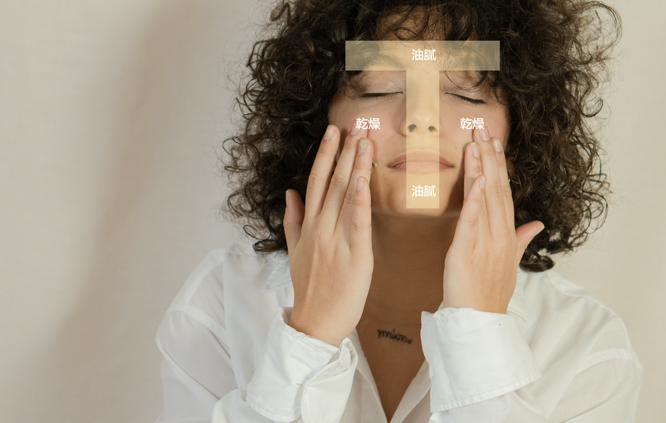 如果您無法確定自己的皮膚類型,則可能是混合型皮膚,你的皮膚是否在某些區域乾燥,而在其他區域油膩?混合性皮膚最常見的狀況為油性 T 區(前額和鼻子下方的線條)、面部剩餘肌膚干燥或正常。